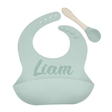 - Stylish Spoon Included: Complementing the bib is a spoon with a wooden handle, also personalized, adding a chic touch to feeding time for your child.