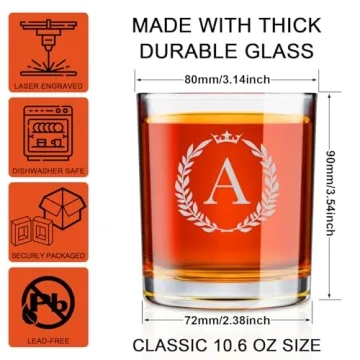 Show moreIntroducing our exquisite Custom Monogram Whiskey Glasses, designed to elevate every drink experience into a personal celebration! Crafted for the discerning whiskey lover in mind, these glasses showcase a unique touch through customized engravings, making each sip a reflection of individuality and style. Each glass carries a monogram that can be tailored to the recipient's initials, ensuring that it not only serves as a premium drinking vessel but also as a timeless keepsake. Perfect for various occasions, this personalized whiskey glass serves as a meaningful gift for men, whether it’s for birthdays, Father’s Day, weddings, or just because. With a generous capacity of 10.6 oz, it offers ample room, allowing whiskey aficionados to enjoy their favorite spirits in style.