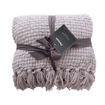 Show more Introducing the PERSUN Throw Blanket, a beautifully crafted decorative knit blanket that embodies both luxury and functionality. Made of high-quality microfiber, this 50"x60" throw blanket is not only super soft to the touch but also exceptionally durable and lightweight, making it perfect for everyday use. Its wrinkle and fade-resistant fabric ensures that it maintains its beauty over time. Available in a variety of elegant colors, including Grey, White, Yellow, Orange, Turquoise Blue, Light Green, and Burgundy, the PERSUN Throw Blanket will seamlessly complement your home decor and add a refined touch to any room.