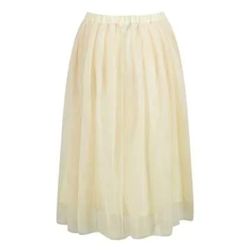 PERSUN Women's Tulle Skirt High Waisted A Line Ballet Layered Pleated Midi Skirt,Beige,Small
