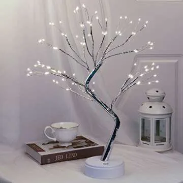 PESGUO 20" 108LED White Firefly Bonsai Tree Lights Artificial Tree USB/Battery-Powered Touch Switch White Warm Lights Tree Lamp for Friends Christmas Wedding Party Decorations