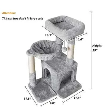 Pesofer Cat Tree, Small Cat Tower with Sisal Scratching Post and Hammock Light Gray