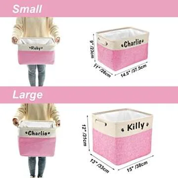 PET ARTIST Collapsible Dog Toy Storage Basket Bin with Personalized Pet's Name - Rectangular Storage Box Chest Organizer for Dog Toys,Dog Clothing,Dog Apparel & Accessories (Pink Big One)