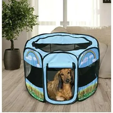 Pet Portable Foldable Play Pen Exercise Kennel Dogs Cats Indoor/outdoor tent for small medium large pets Animal Playpen with Pop up mesh cover great for travel LARGE,BLUE/GREEN