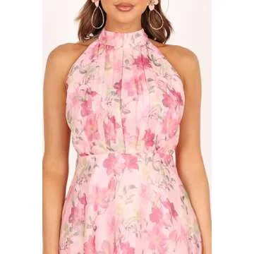 Petal & Pup Women's Gardenia Halter Mini Dress, Pink Floral - Effortlessly Chic & Flattering