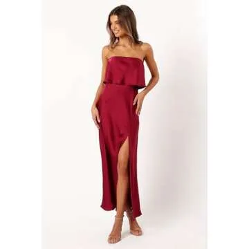 Why You will Love This Product?:Imagine stepping into a room and feeling all eyes on you; the Petal & Pup Women's Vienna Strapless Midi Dress is your ticket to that enchanting experience. Not only does it elevate your style, but it also empowers you with confidence through its flattering fit and luxurious fabric. This is more than just a dress; it’s a statement of elegance that embodies your individuality and taste.