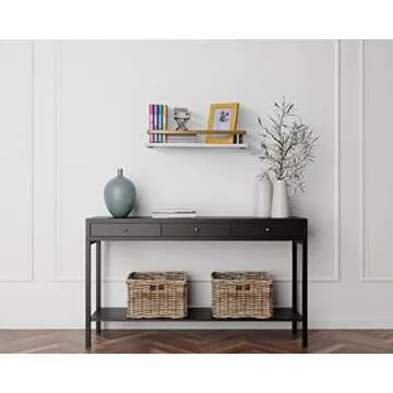 Peter's Goods Modern Floating Shelves with Rail, Modern Brass Finish, Set of 2 Shelves - Wall Mounted Bathroom Wall Shelves with Towel Bar - Also Perfect for Bedroom Decor and Kitchen Storage