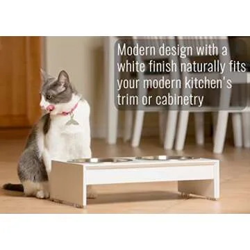 PetFusion Bamboo Elevated Dog & Cat Bowls | Raised Feeders Water Resistant Seal (Short 4"; Tall 8”) | US Food Grade Stainless Steel Dog & Cat Bowls: White