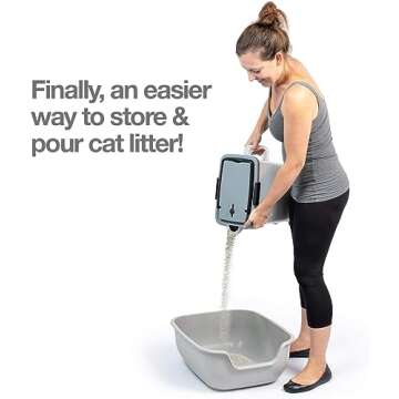 This innovative product features wheels and a top handle for easy transportation within or between rooms, allowing you to effortlessly move your litter storage where you need it most. The adjustable spout lets you control the pour speed of your litter, reducing mess and minimizing dust, which is especially beneficial for allergy sufferers and pets alike. The large rear ‘teapot’ handle makes refilling your litter box a breeze, letting you keep your environment clean with minimal hassle.