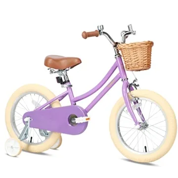 Show more Introducing the Petimini 16 Inch Little Kids Bike, a delightful blend of fun, safety, and style designed specifically for children aged 4 to 8 years! Crafted with a retro vintage aesthetic, this charming bicycle comes in a beautiful purple hue that little girls adore. Its design not only promises a joyful ride but also ensures a smooth and secure cycling experience with short-reach brake levers, lower stand-over height, and removable training wheels, making it perfect for beginners.
