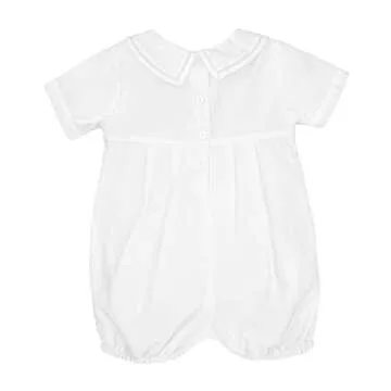 Petit Ami Baby Boys' Romper with Smocking and Faggoting, 6 Months, White