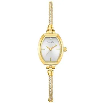 Petite Bracelet Watch for Women, Gifts for Girlfriend Diamond Dress Analog Watch Waterproof (Two-Tone Gold Black)
