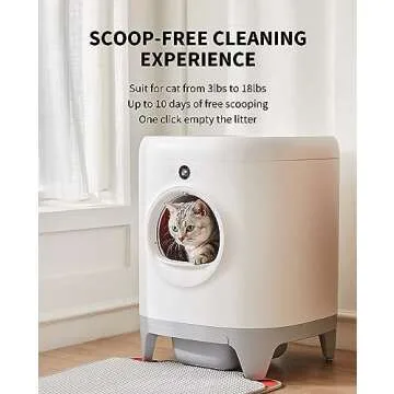 Show more The Purax Smart Litter Box is a revolutionary product designed to simplify the lives of cat owners. Imagine a world where the burden of daily litter box cleaning is lifted from your shoulders. This innovative automatic litter box not only scoops poop for you but also features automatic deodorization to keep your home smelling fresh. With the ability to clean itself every 2 to 8 weeks, depending on your pet's usage, the Purax Smart Litter Box makes the task of maintaining cleanliness almost effortless.