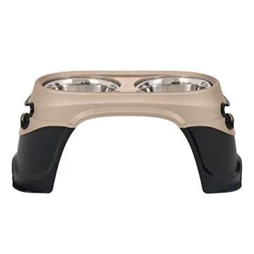 Petmate Easy Reach Pet Diner Elevated Dog Bowls 2 Sizes 2 Polished Colors, Black/Pearl Tan, Large (23479), Made in USA
