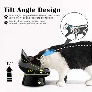 PETNF Cat Bowls for Indoor Cats,2 Pack Ceramic Raised Slanted Cat Food Bowl Elevated Tilted Whisker Friendly,Anti Vomiting Cat Feeding Bowl,Black White Kitty Water Bowl,Ergonomic Cat Dishes Plate Set