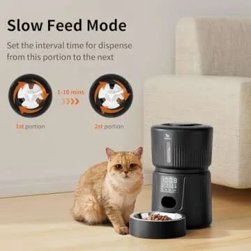 The slow feed mode dispenses food gradually, allowing your pet to eat slowly, which aids in digestion and reduces the risk of choking.