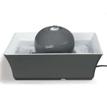 Show more Introducing the exquisite ceramic water fountain from PetSafe, a must-have for every pet owner who values both aesthetics and functionality. This innovative water fountain boasts a generous 70 oz water capacity, ideal for cats and small to medium-sized dogs. The unique design encourages your furry friends to drink more water, promoting vital hydration and overall health. Unlike conventional water bowls, this fountain circulates water, keeping it fresh and appealing. The included replaceable carbon water filter ensures that your pet always enjoys clean water, free from impurities.