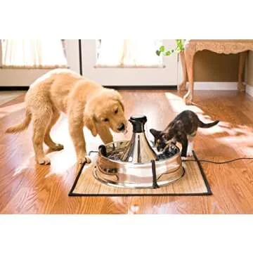 Show more Introducing the PetSafe Drinkwell Stainless Steel 360 Multiple Pet Fountain - the ultimate hydration solution for your furry friends! Designed with an impressive 128-ounce capacity, this fountain is perfect for pet households with multiple cats or dogs. The sleek, stainless steel design not only adds a modern touch to your home but also ensures long-lasting durability while resisting scratches and rust. This fountain is built to entice your pets to drink more, promoting good health and happy hydration among cats and dogs alike.