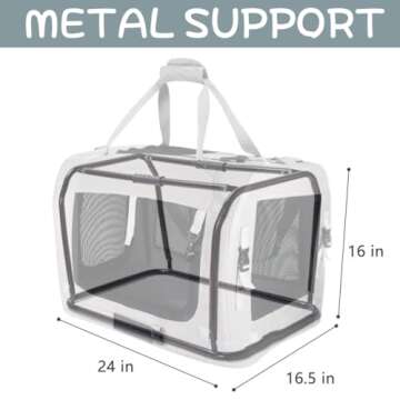 Petseek Extra Large Cat Carrier Soft Sided Folding Small Medium Dog Pet Carrier 24"x16.5"x16" Travel Collapsible Ventilated Comfortable Design Portable Vehicle Without Curtain(Basic Grey)