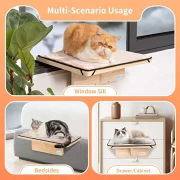 Petsfit Cat Window Perch Natural Solid Wood with Removable Fleece Mat, Safety Sturdy Cat Perch, Fit for Windows/Door/Drawer