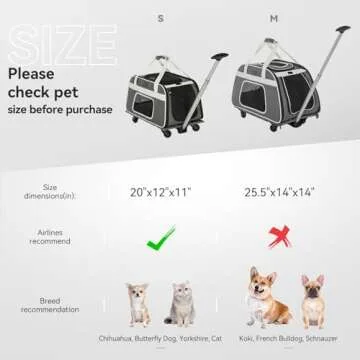 Introducing the **Petsfit Pet Carrier with Removable Wheels**, a versatile travel companion designed for pet owners who want ease and flexibility. With dimensions of **25.5"L x 14"W x 14"H**, this carrier provides more interior space than typical carriers, making it ideal not only for a single medium dog but also capable of accommodating **two small dogs or multiple kittens**. Its unique design ensures that your furry friends have sufficient room to relax and move around while remaining safe and secure during...