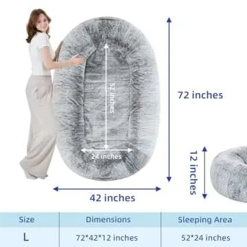 pettycare Human Dog Bed for Adult, Fluffy Faux Rabbit Fur Human Size Dog Bed Better Sleeping, Supportive with Orthopedic Memory Foam Mats,72"x42"x12", Grey