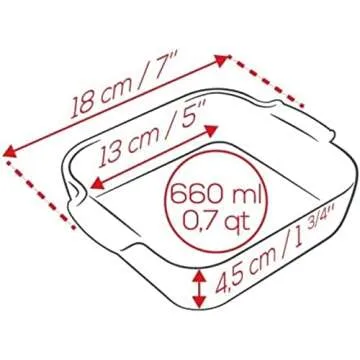 The dish has ample capacity for a variety of baked meals, measuring 7 x 5 x 2 inches.
