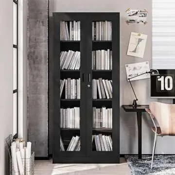 PEUKC Display Cabinet with Glass Doors, Curio Cabinets with 4 Adjustable Shelves, Locking Glass Cabinet Display Case for Home, Office, Clinic, Pantry, Assemble Required, Black