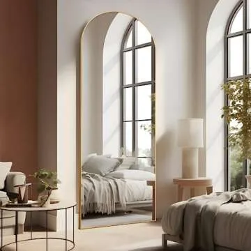 Pexfix Arched Full Length Mirror Full Length Floor Mirror Floor Mirror Full Length Arched Wall Mirror Full Body Wall Mirror Sleek Arched-Top Mirror,Gold,64''×22''