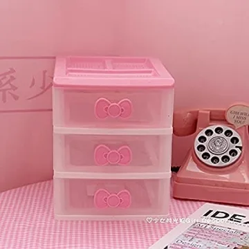 Show moreIntroducing the PEXIZUAN Kawaii Makeup Organizer, a delightful addition to your kawaii room decor! This charming desk organizer is available in three sizes – 2-layer, 3-layer, and 4-layer – allowing you to choose the perfect fit for your needs. Crafted from durable ABS plastic, it boasts a combination of practicality and playful aesthetics that will bring a smile to your day as you organize your space. The 3-layer version is expertly designed with dimensions of 14cm x 17.5cm x 17cm (5.5" x 6.8" x 6.7"), providing ample room for your beauty essentials, stationery, or even art supplies. With its cute design featuring adorable Hello Kitty bows, it perfectly complements your existing decor while offering a sturdy structure that can withstand everyday use. Enjoy the organization without sacrificing style and transform your workspace into a kawaii haven!