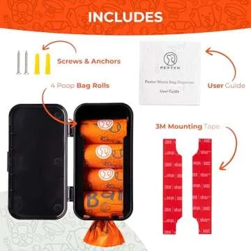Pexter Dog Poop Bag Dispenser - Outdoor or Indoor Pet Waste Bag Dispenser Station - Stick-On or Screw-On Wall Mount - Poop Bags Storage Outdoor Container - Includes 4 Doggie Bag Rolls (Black)