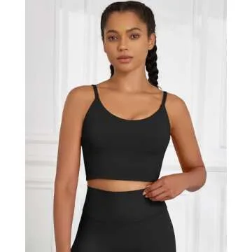 Pfreesea Women's Sexy Longline Sports Bra Tank Top - Built-in Support for Workouts