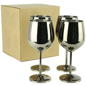PG Set of 4 Stainless Steel Wine Glass - 18.5oz Black Wine Glasses Wine Glasses - Unbreakable Wine Glasses - Stem Metal Wine Goblets