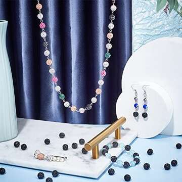 PH PandaHall 100pcs 10mm Black Rhinestones Beads Pave Disco Ball Clay Beads, Polymer Clay Rhinestone Beads Round Crystal Beads for Bracelet Necklace Earring Jewelry Making Christmas Decor