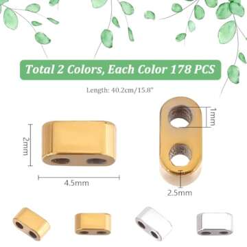 PH PandaHall 356pcs Half Tila Beads, 4.5x2mm Synthetic Hematite Flat Craft Bead 2 Hole Bead Frosted Japanese Loose Spacer Bead for DIY Stackable Jewelry Friendship Bracelet Making, Golden/Platinum