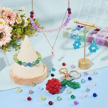 PH PandaHall 600pcs 8mm Crackle Glass Beads 24 Color Crystal Glass Beads Round Loose Beads for Christmas Tree Ornament Bracelet Summer Beading Fishing Friendship Bracelet Mother's Day Jewelry Making