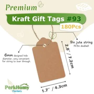 PH PERKHOMY 180 Pcs Gift Tags with String Kraft Paper Blank for Price Tag Gift Bag Hang Tags Box Labeling Clothes Craft Wedding Christmas Presents Halloween (Brown 180pcs)