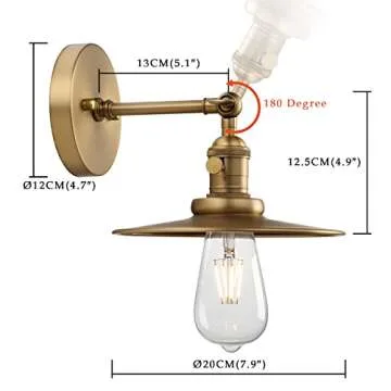 Phansthy Industrial 1-Light Wall Sconces, Vintage Wall Light Fixture with 7.9" Crafted Metal Shade, Bathroom Vanity Light with on Off Switch, Wall Lamp for Bedroom Living Room Kitchen (Antique)
