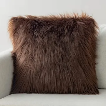 Phantoscope Faux Fur Plush Decorative Pillow Cover 18x18 Inches in Coffee
