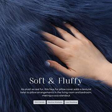 Phantoscope Faux Fur Solid Decorative Pillow Cover Fluffy Throw Pillow Mongolian Luxury Fuzzy Pillow Case Cushion Cover for Bedroom and Couch,Navy Blue 18 x 18 Inches