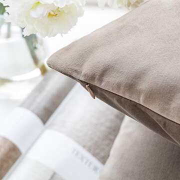 Phantoscope Pack of 2 Velvet Decorative Throw Decorative Pillow Cover Soft Solid Square Cushion Case for Couch Taupe 22 x 22 inches 55 x 55 cm