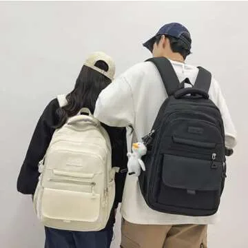 Phaoullzon Teen Girls School Backpack for College, Aesthetic Bookbag for Women,Beige