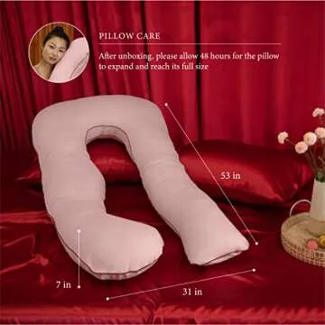 Pharmedoc Organic Pregnancy Pillow - U Shaped Maternity Body Pillow - Cotton Candy Color - Organic Cotton Cover Full Body Pillow