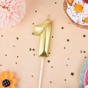 PHD CAKE 2.76 Inch Diamond Gold 1 Number Birthday Candles, Gold Number Candles, Cake Number Candles, Party Celebration