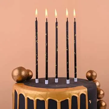 PHD CAKE Black Gold Long Thin Birthday Candles, Cake Candles, Birthday Parties, Wedding Decorations, Party Candles, Elegant Candles