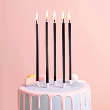 Show morePHD CAKE Black Long Thin Birthday Candles are the perfect finishing touch for your celebrations, crafted to enhance the elegance of any cake while adding a touch of sophistication to your special events. Each of these exquisite, 24-inch long candles is designed with a tapered shape that not only looks stunning but also ensures a clean burn, allowing you to celebrate those special moments with charm and grace. Whether it’s a birthday, wedding, or any festive occasion, these candles will undoubtedly create a memorable centerpiece on your cake!