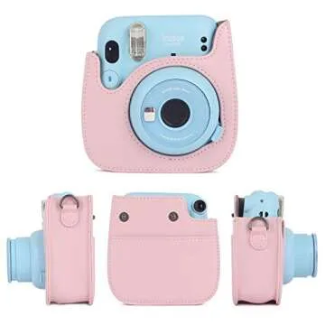 Phetium Instant Camera Case Compatible with Instax Mini 11/12,PU Leather Bag with Pocket and Adjustable Shoulder Strap (Blush Pink)