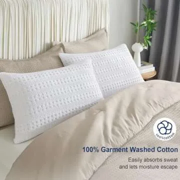 PHF 100% Cotton Waffle Pillow Shams Standard Size, 2 Pack 20" x 30" Soft Skin-Friendly Pillowcases, No Filling, Aesthetic Woven and Breathable Waffle Weave Pillow Case Covers for Bed, White