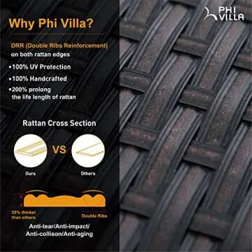 PHI VILLA Outdoor Patio Sectional Furniture Set 5 Piece Low-Back Rattan Sofa Set Wicker Patio Conversation Set with 4 Seat Cushions and 1 Tempered Glass Table (Navy Blue)