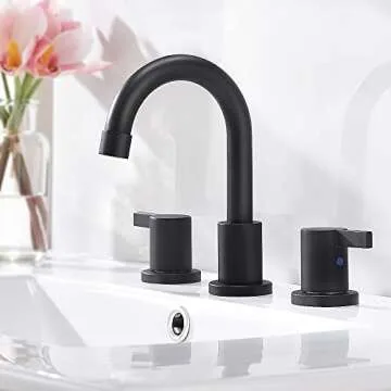 Show more Upgrade your bathroom effortlessly with the *Phiestina Bathroom Faucet*, designed to blend luxury with functionality. This elegantly crafted faucet boasts precise dimensions that fit a range of standard setups, specifically for pre-drilled holes between *1.26-1.38’’ (32-35mm)* diameter and requiring a *6-12 inch widespread* installation. With an overall height of *7.87” (200mm)* and spout reach of *4.92” (125mm)*, this faucet combines stunning design with practical use.